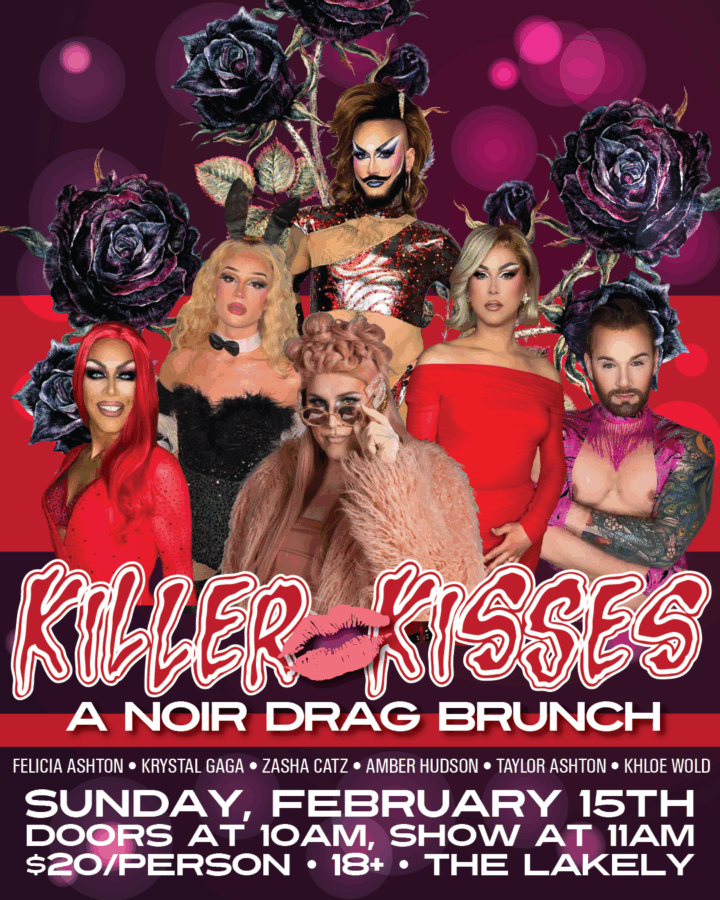 On Sunday, February 15, The Lakely invites you to Killer Kisses: A Noir Drag Brunch—a sultry, high-drama drag show paired with a brunch menu that absolutely delivers. Think moody glamour, bold performances, and a brunch spread designed to keep your glass full and your jaw on the floor. Set in The Lakely’s intimate space, where every seat feels close to the action, guests will enjoy performances that flirt, tease, and command the room.